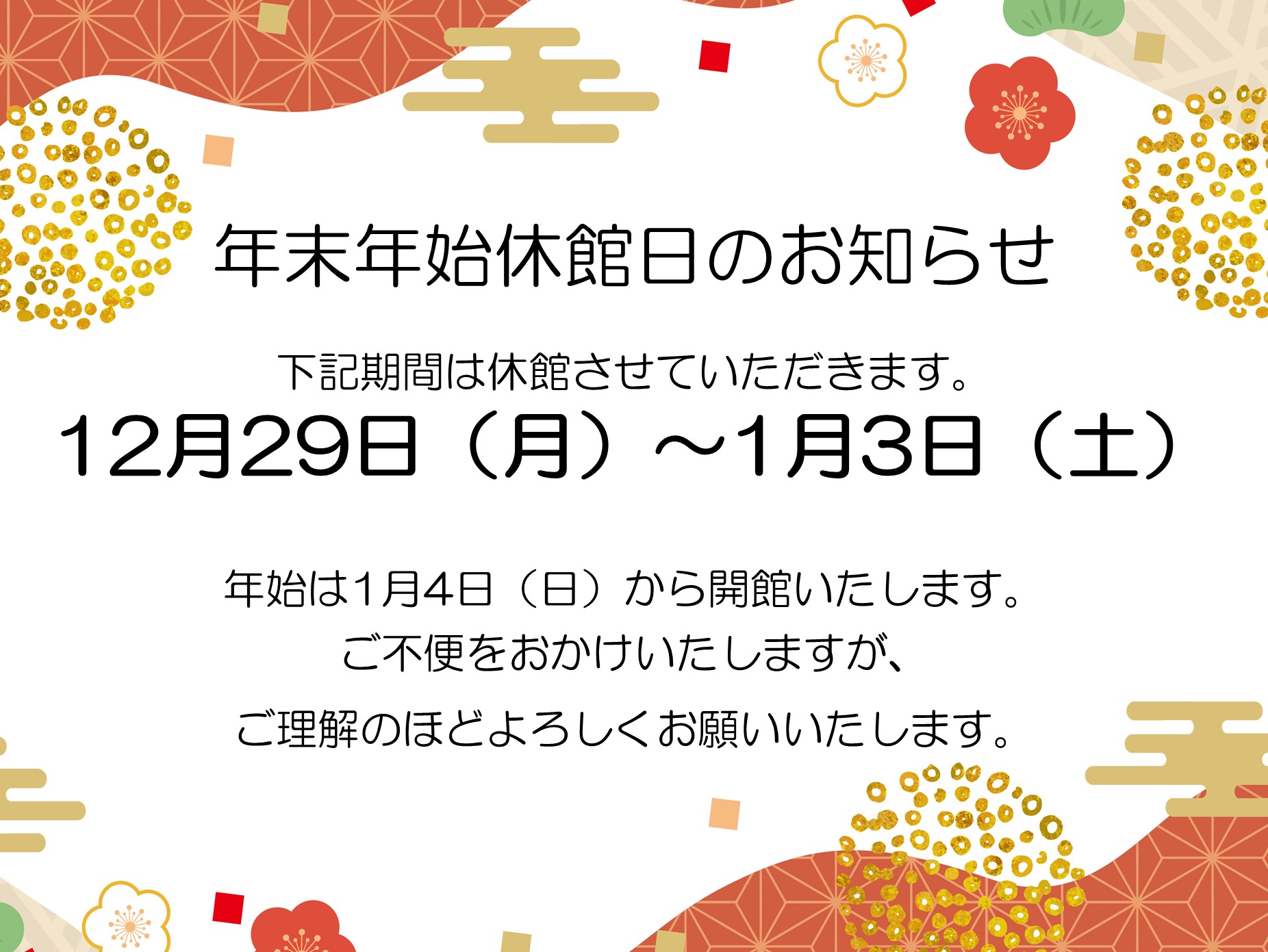 - お知らせ 2025/12/26 年末年始休館日のお知らせ