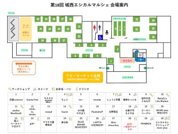 ※下記のお店は全て未来館内1階にて、同時開催のフリーマーケットは館外の藤棚周辺にて開催します。